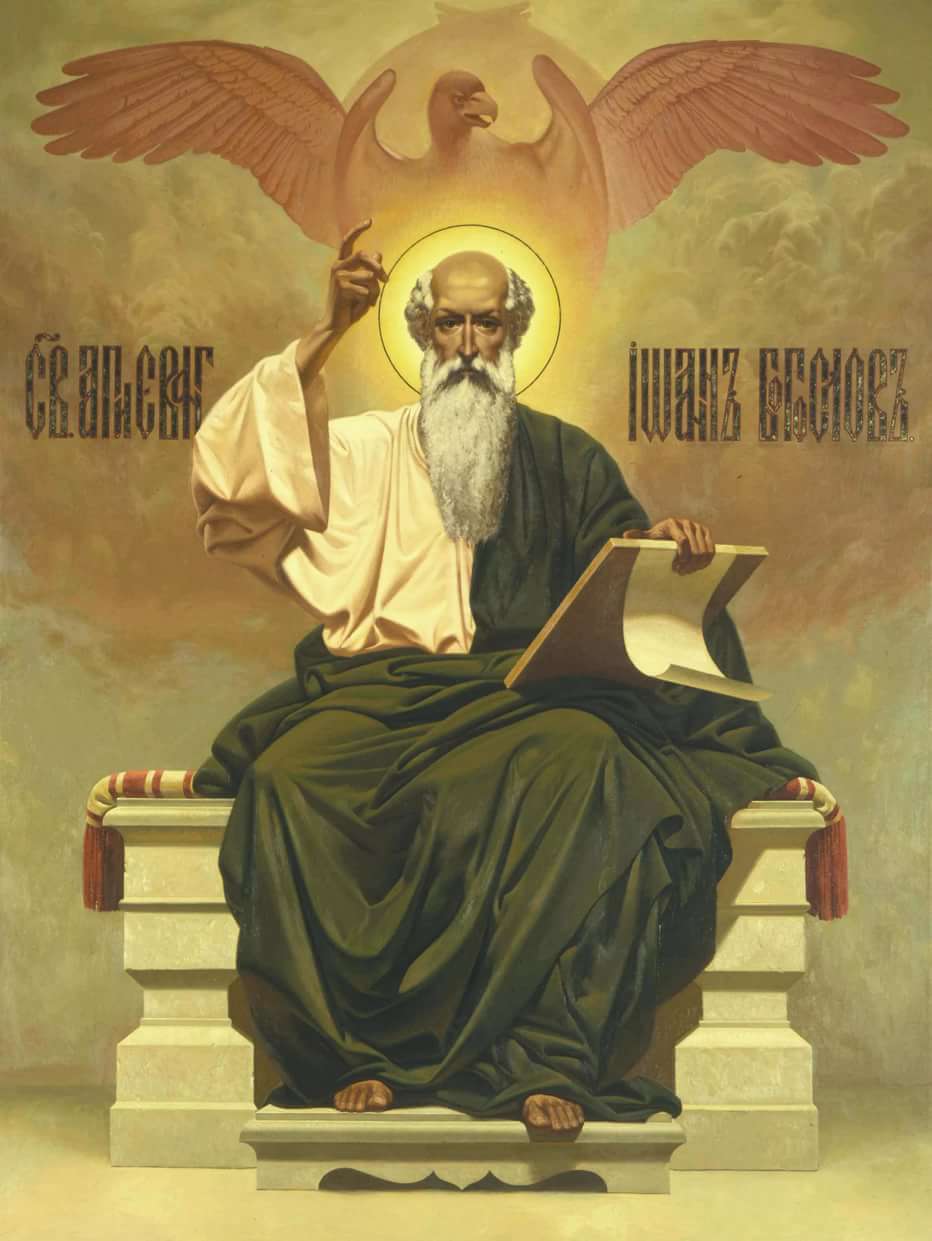 Господь дав своєму улюбленому учневі Іванові і його братові ім’я «Синів Грому» – вісника страхітливого у своїй очисну силу небесного вогню. Цим самим Спаситель вказував на полум’яний, вогненний, жертовний характер християнської любові, проповідником якої був апостол Іоанн Богослов. Орел – символ високого польоту богословської думки – іконографічний знак євангеліста Іоанна Богослова. Найменування Богослова Свята Церква дала з учнів Христових тільки святому Іоанну, тайнозрителю Божої Долі.