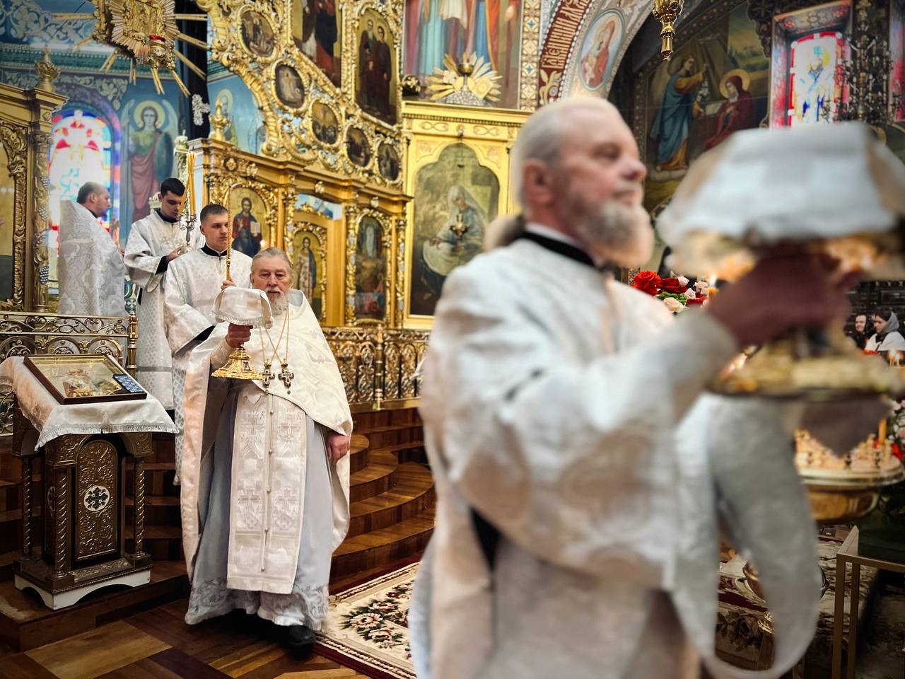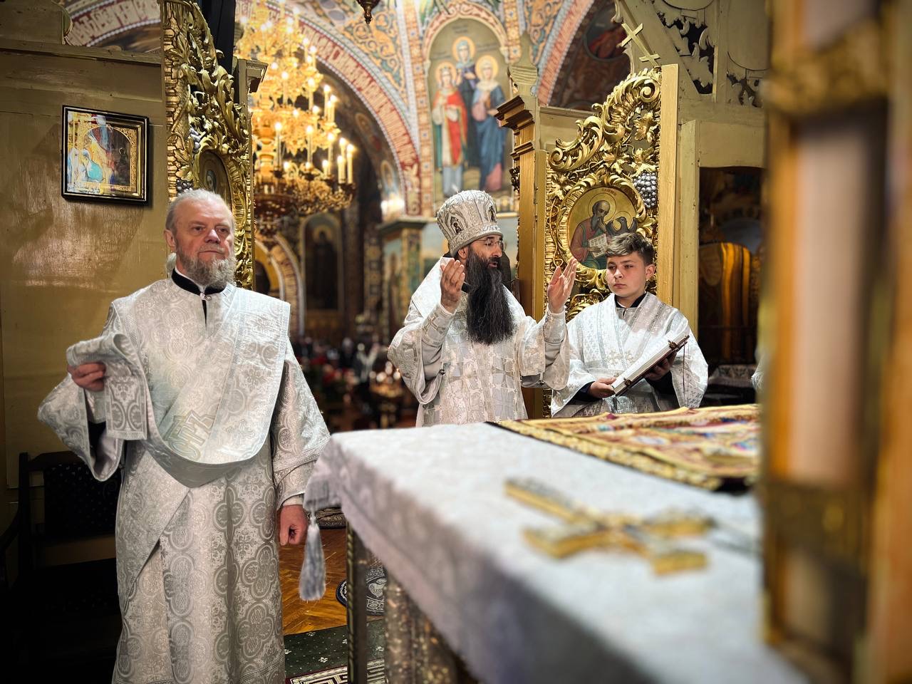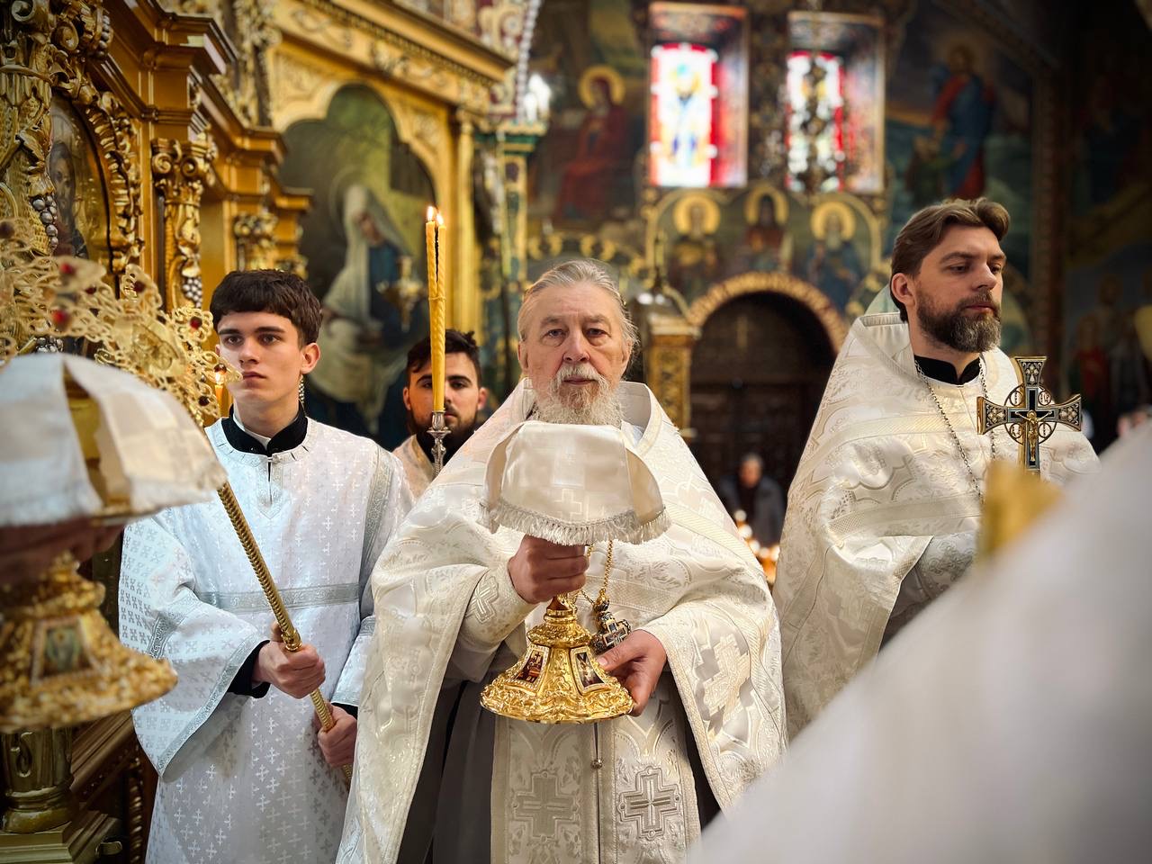 Його Високопреосвященству співслужили духовник єпархії протоієрей Максим Мельничук, настоятель собору протоієрей Максим Мельничук та клірики храму.
