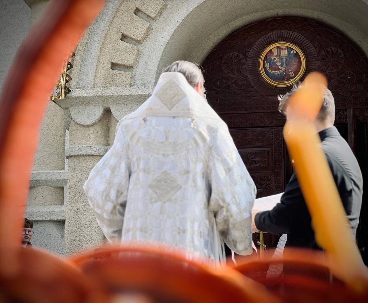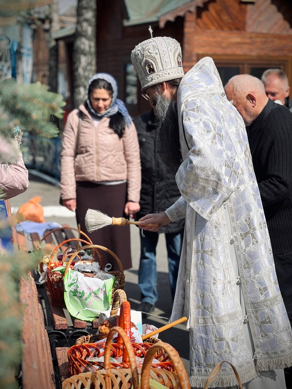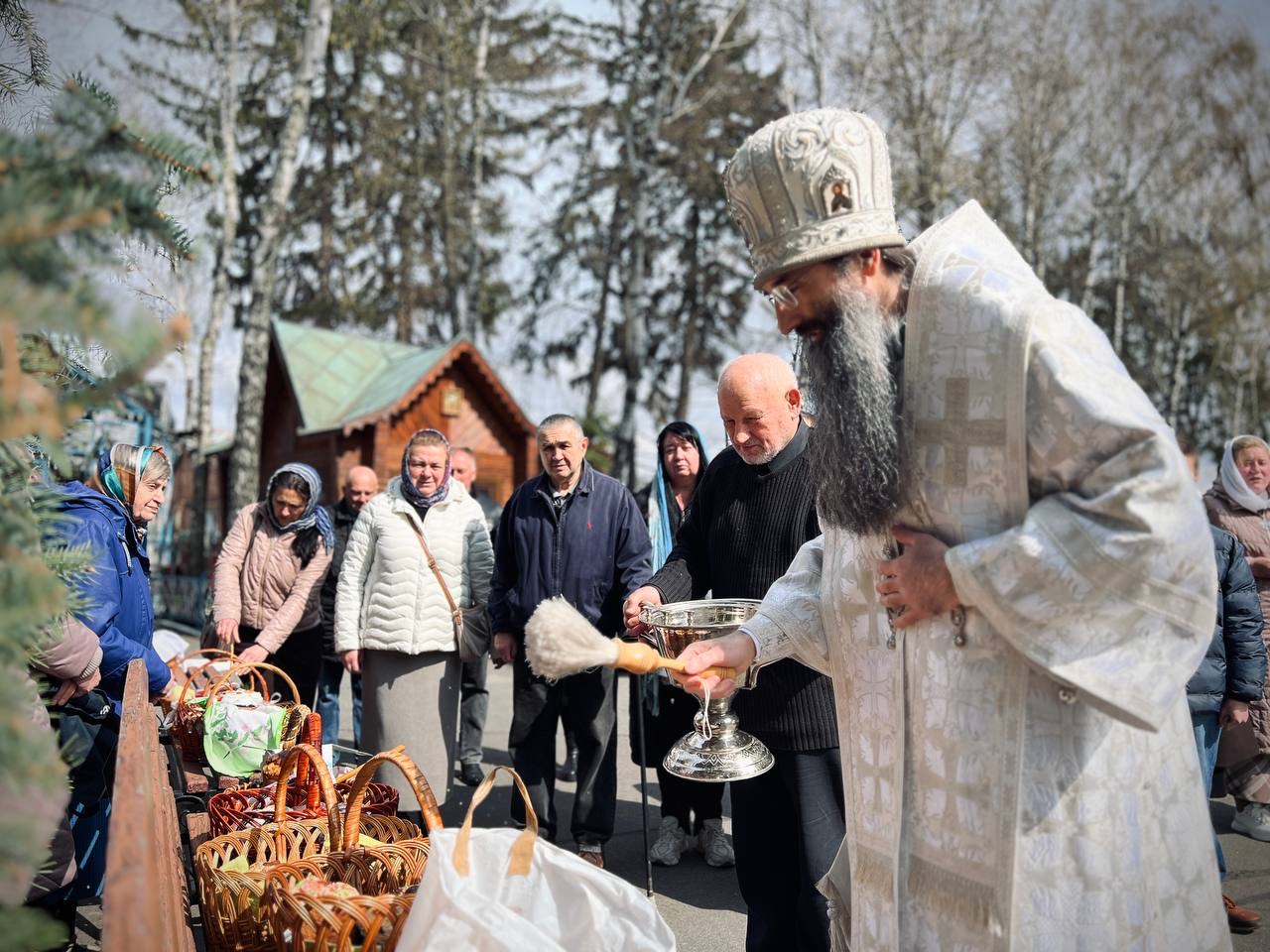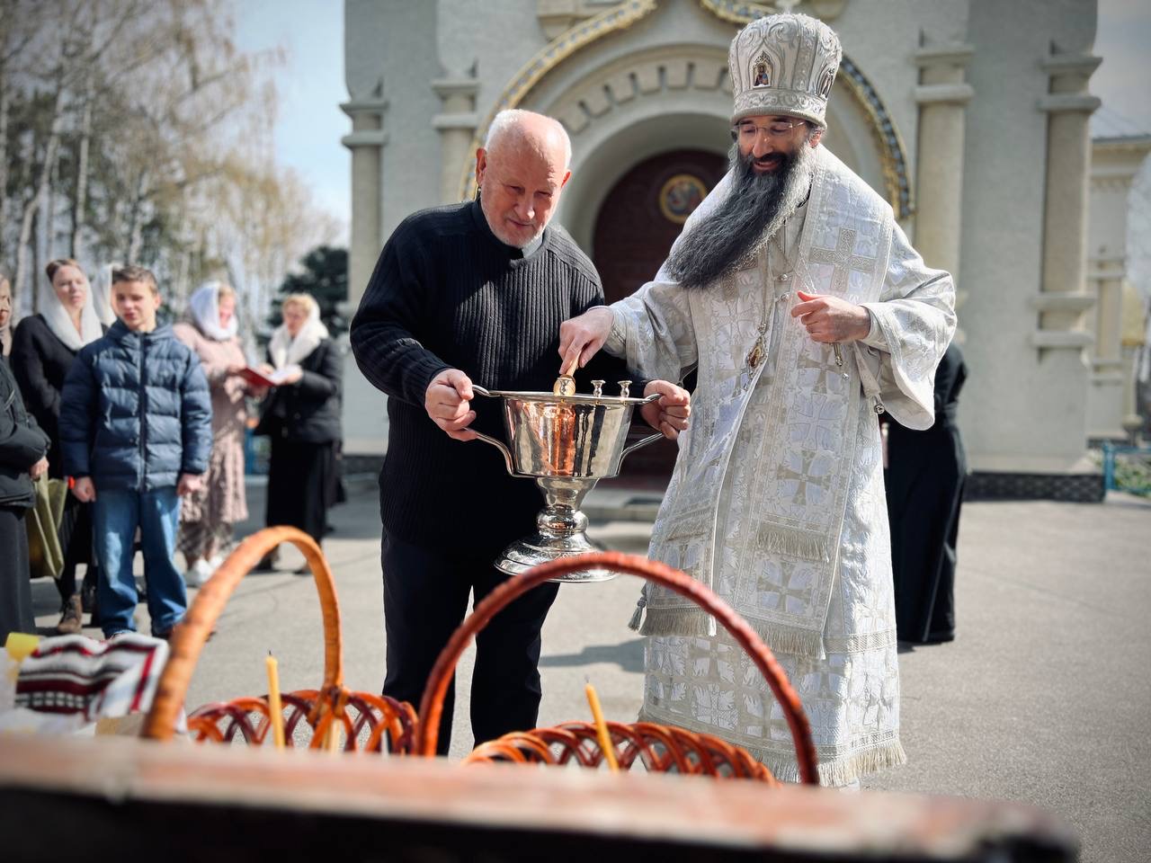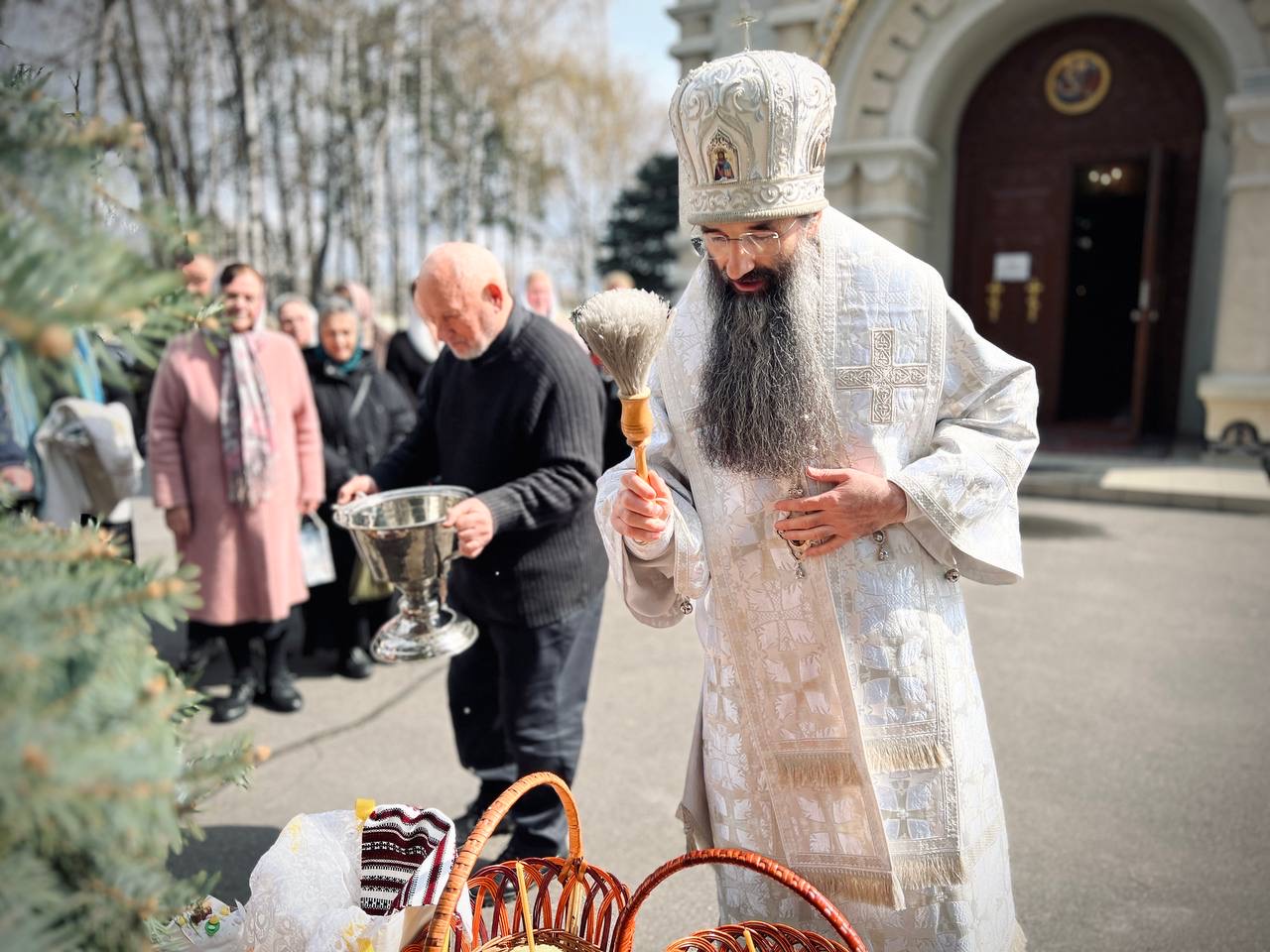 Після завершення богослужіння, за усталеною традицією, митрополит Варсонофій звершив освячення пасхальних приношень.