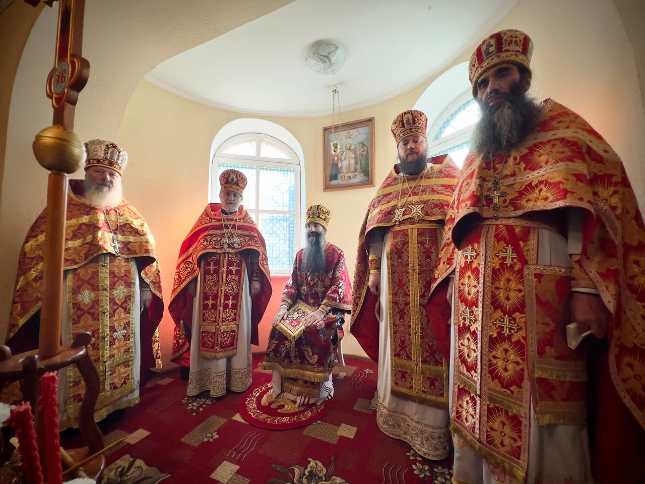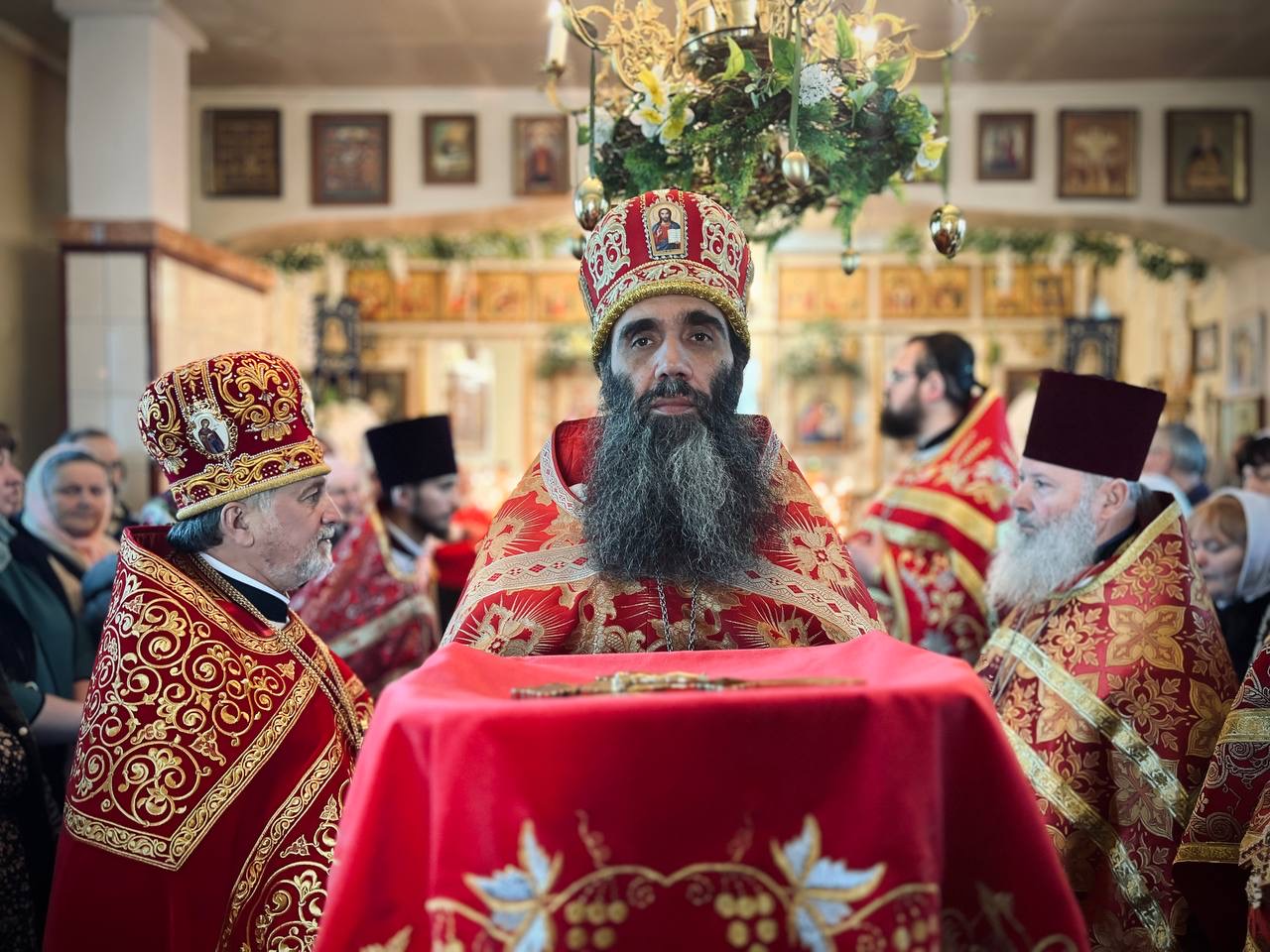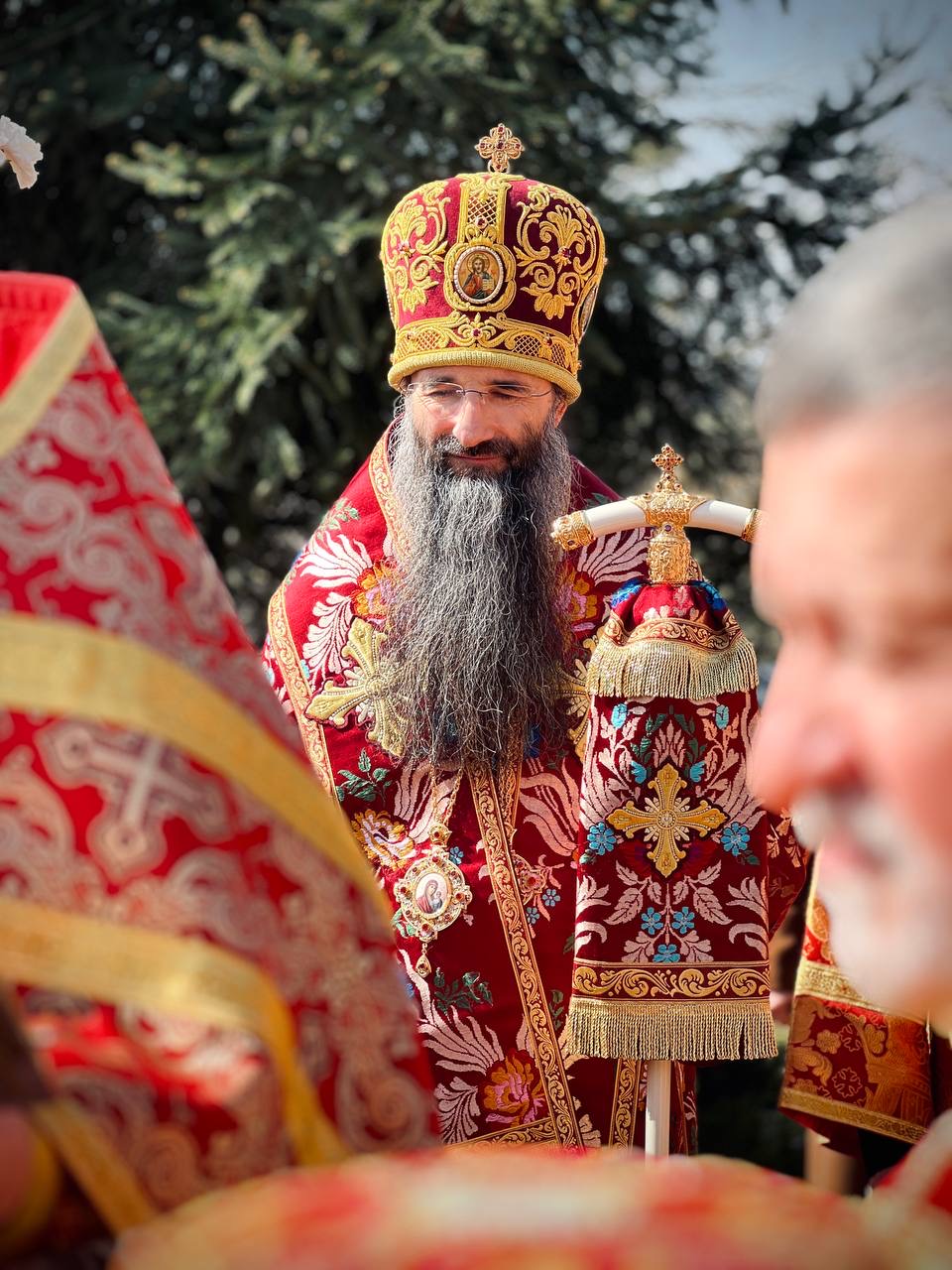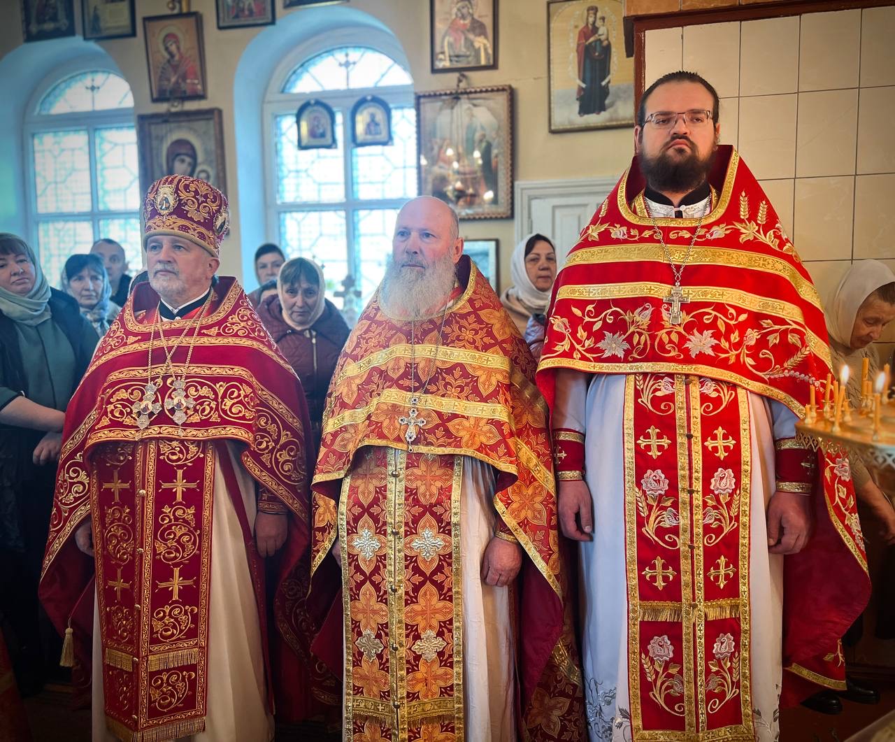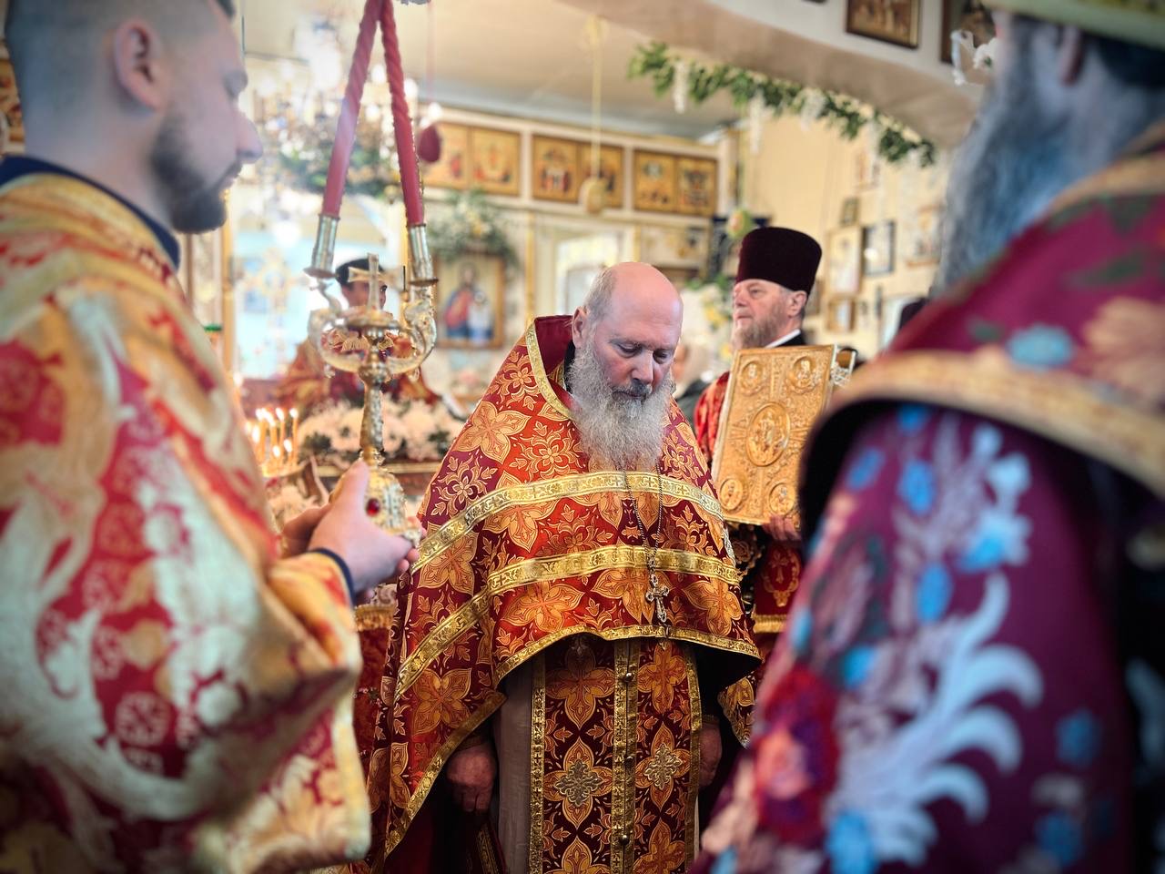 Його Високопреосвященству співслужили: секретар єпархії архімандрит Єнох (Торак), намісник монастиря архімандрит Аркадій (Сенчуківський), братія обителі та гості у священному сані.
