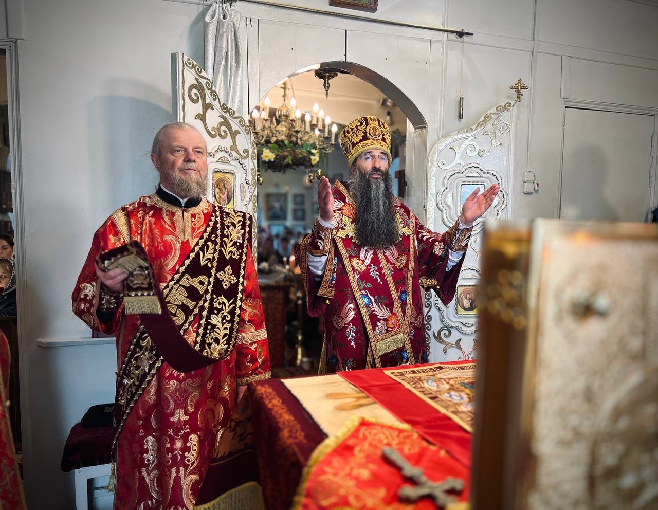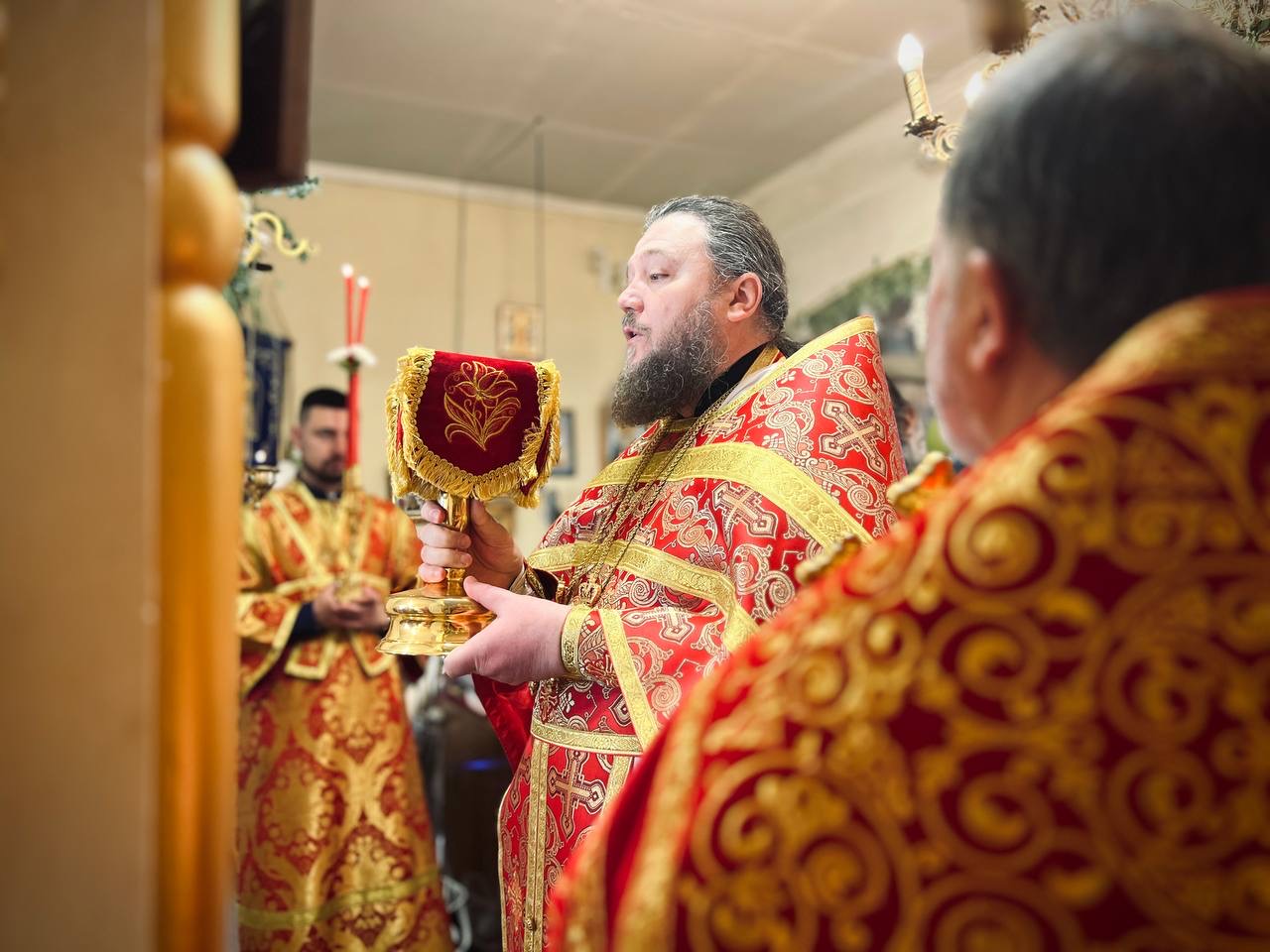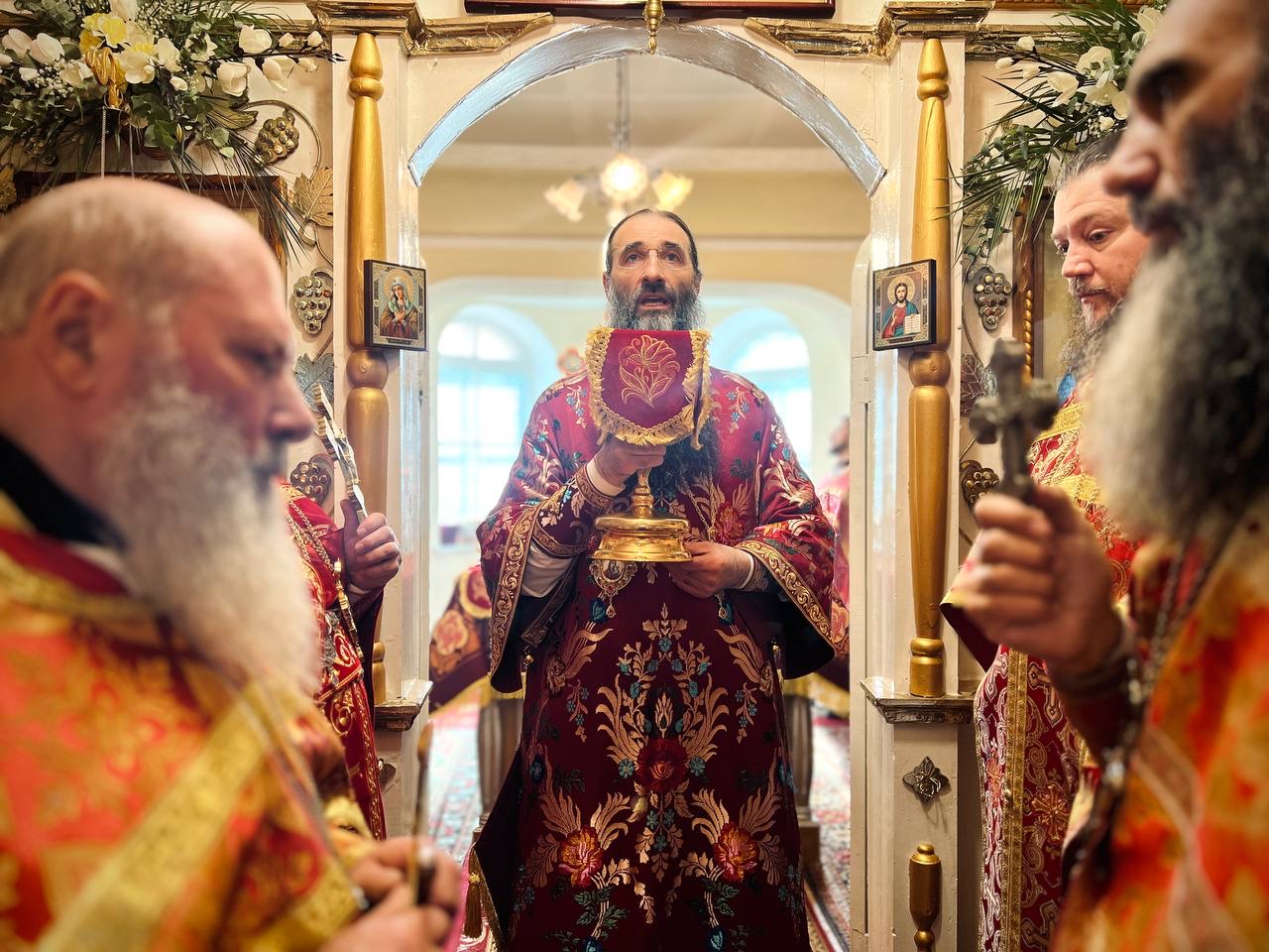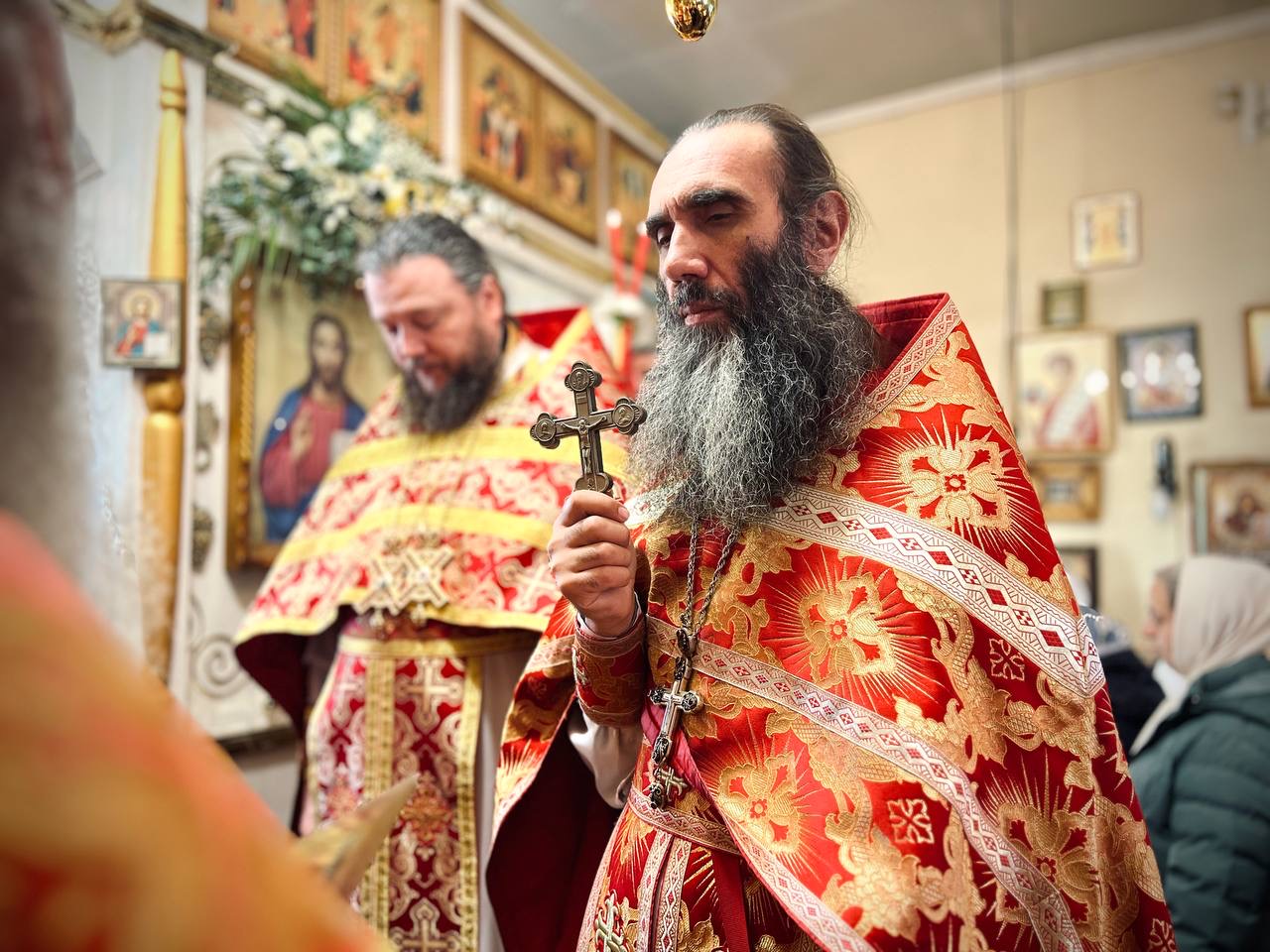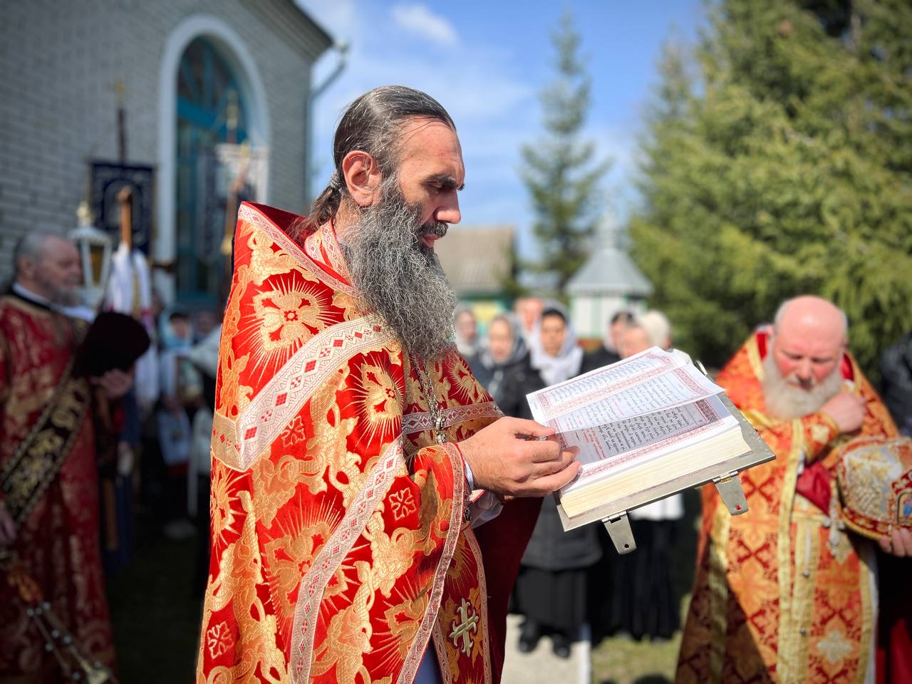 Його Високопреосвященству співслужили: секретар єпархії архімандрит Єнох (Торак), намісник монастиря архімандрит Аркадій (Сенчуківський), братія обителі та гості у священному сані.