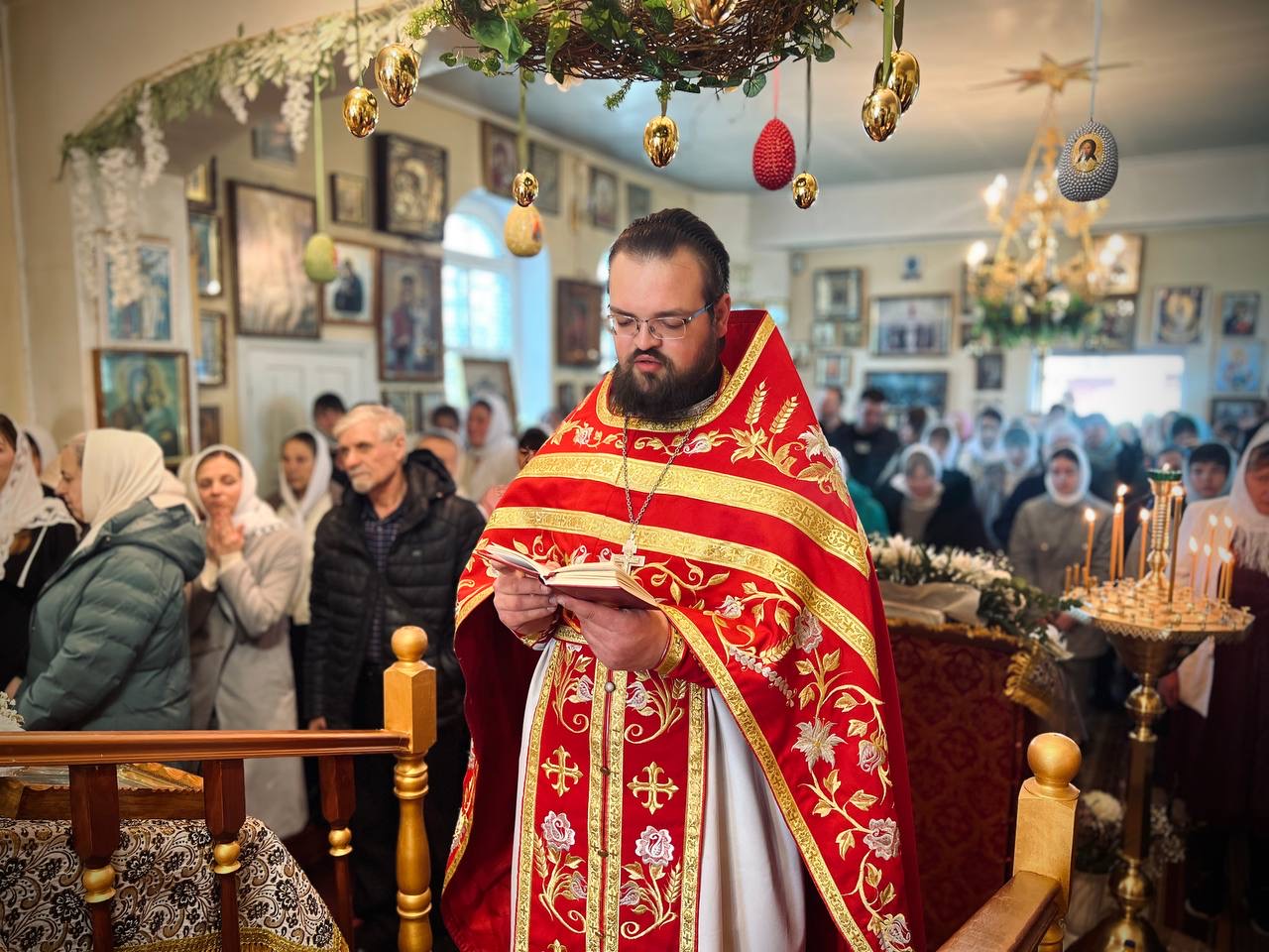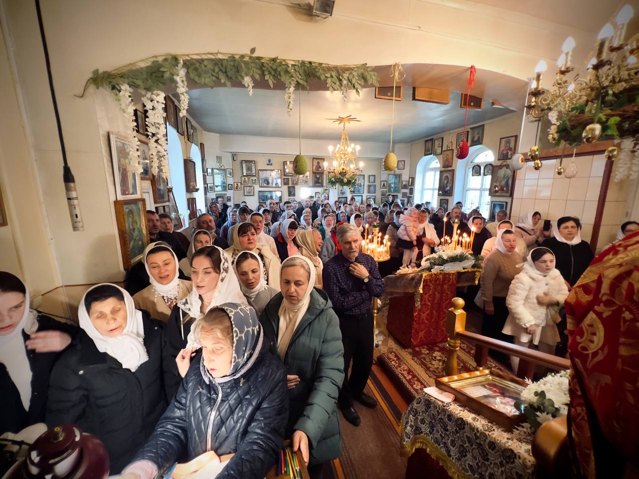 Під час богослужіння лунали пасхальні піснеспіви парафіяльного хору під управлінням протодиякона Арсенія Коржевого, які духовно налаштовували вірян на переживання світлої радості Воскресіння Христового.