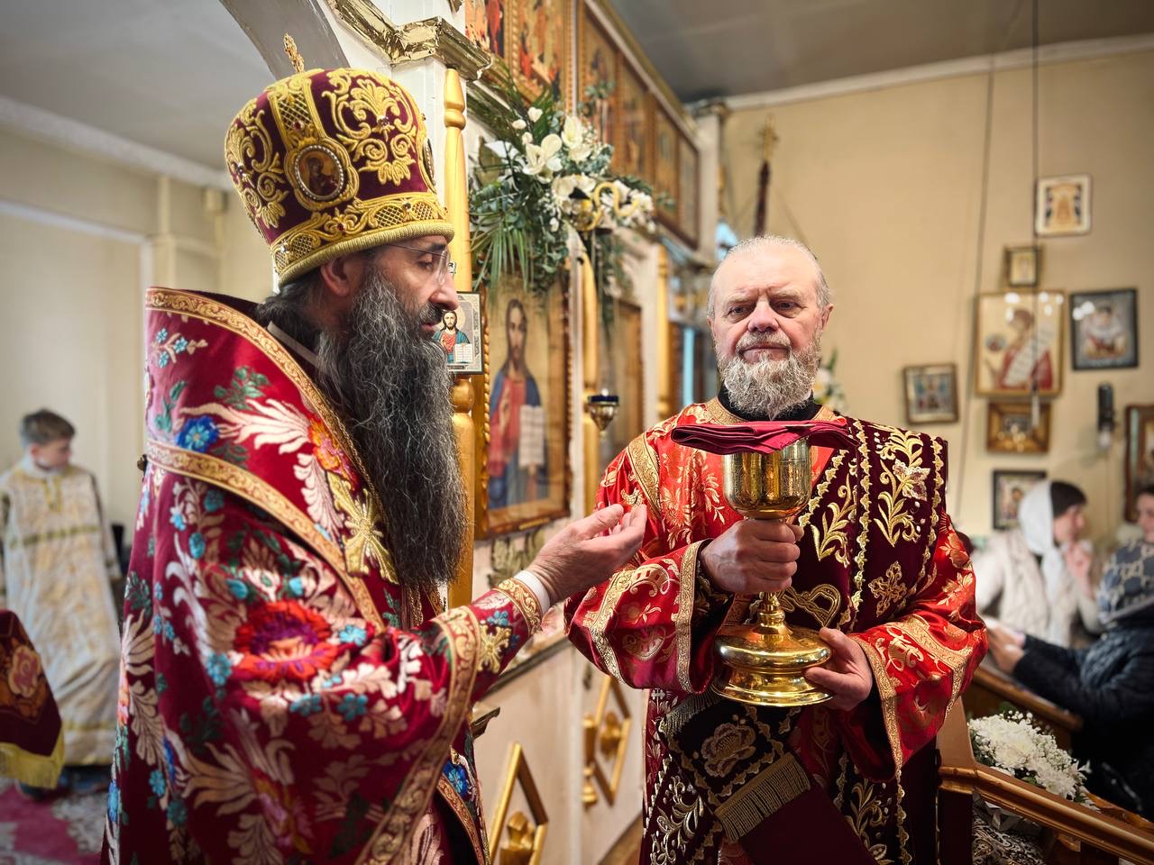 Під час відправи архієрея вітали з прийдешнім ювілеєм чисельні паломники та гості. В свою чергу митрополит Варсонофій подарував священикам та усім присутнім у храмі пам’ятні подарунки.