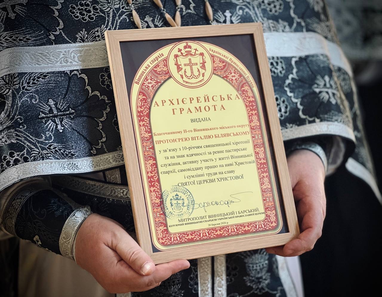Після завершення Літургії митрополит Варсонофій звернувся до присутніх зі словом проповіді, а також привітав благочинного протоієрея Віталія Білявського з 10-річчям священицького служіння.