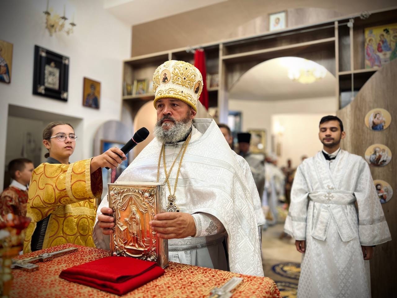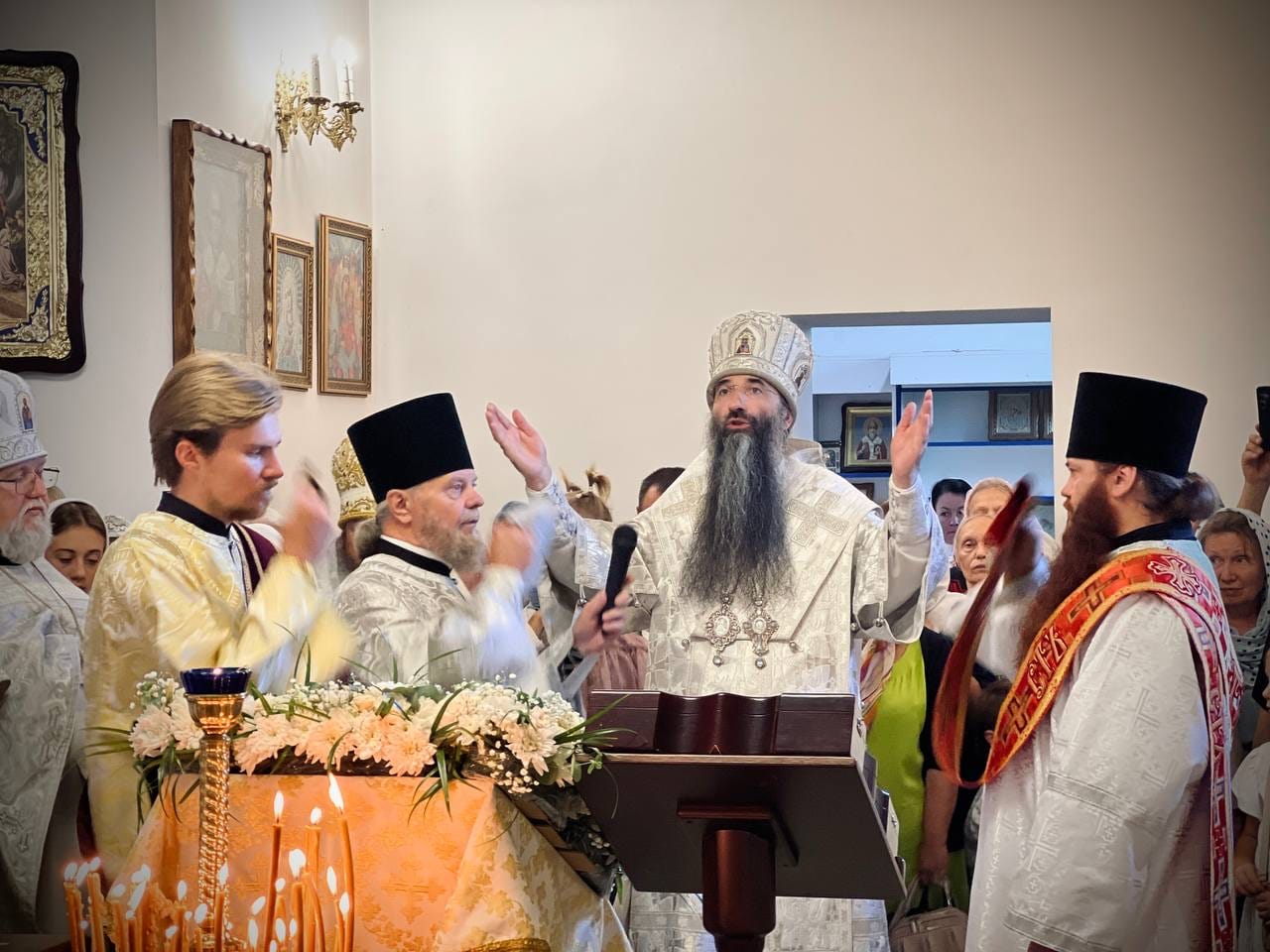 Архіпастирю співслужили: намісник монастиря Аркадій (Сенчуківський), духовенство обителі та гості у священному сані.