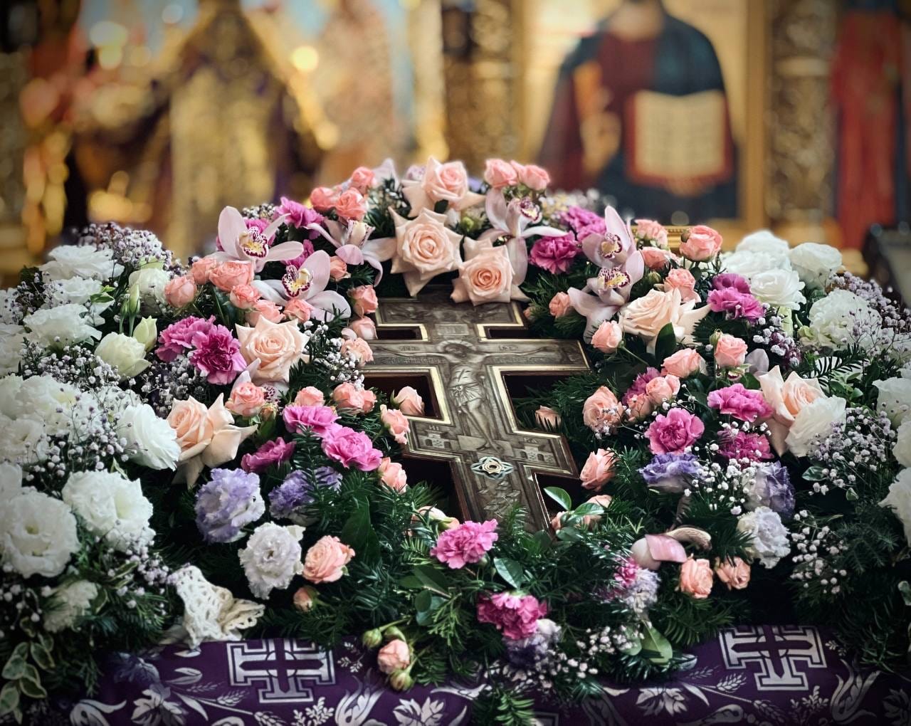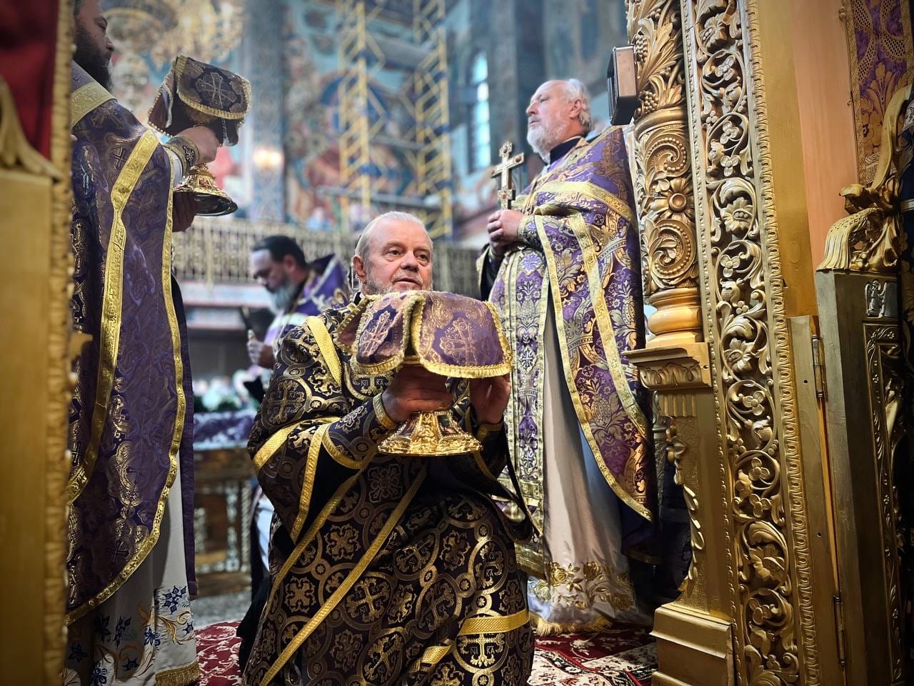 Після Літургії був звершений чин славлення перед Животворящим Хрестом Господнім, який за традицією напередодні цього було винесено на середину храму.