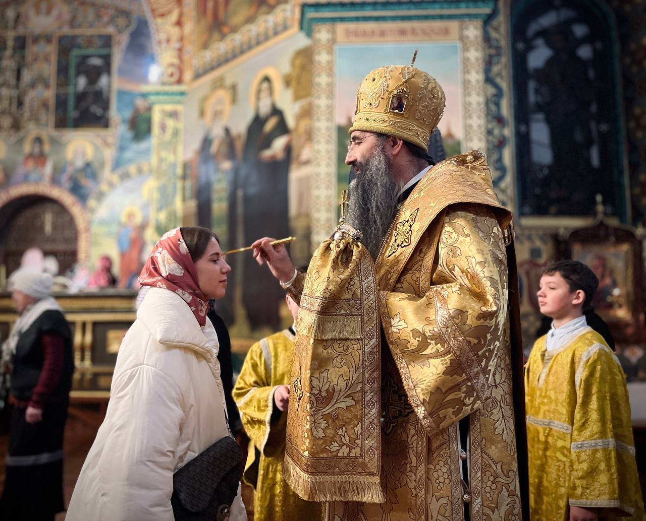 Його Високопреосвященству співслужили духівник єпархії протоієрей Олексій Мельничук, настоятель собору протоієрей Максим Мельничук та клірики храму.