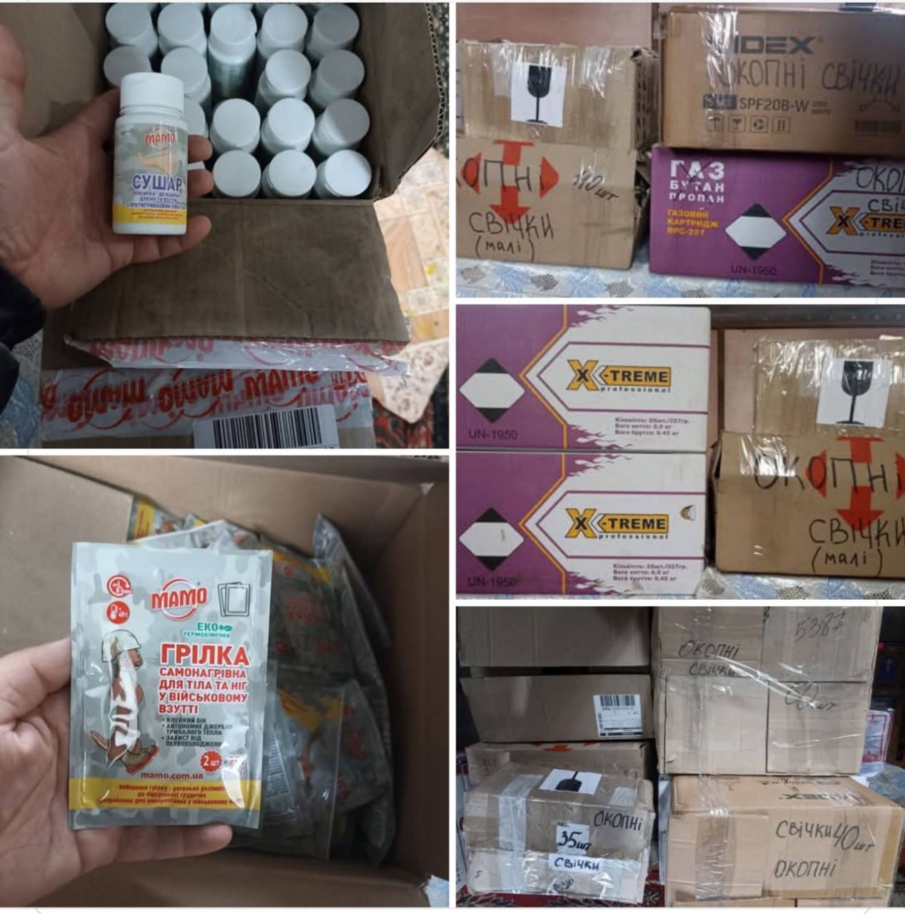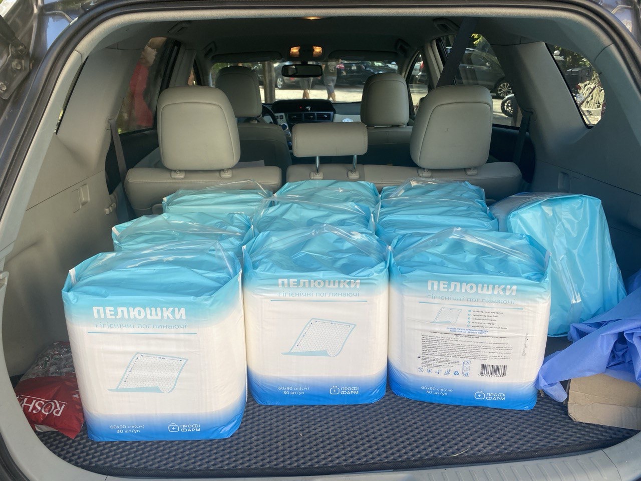 – 6125 кг продуктів харчування, 13 000 ватно-марлевих пов’язок;