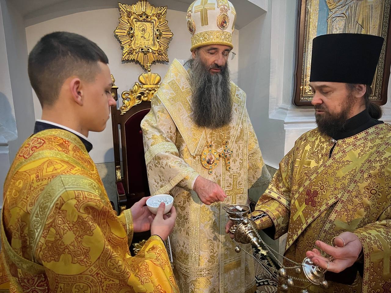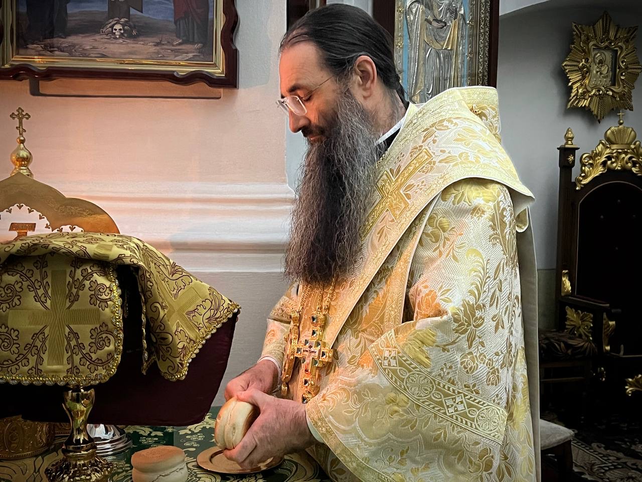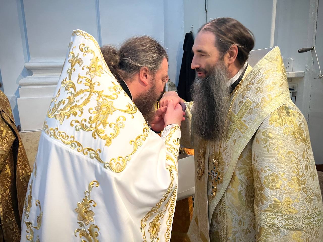 Після богослужіння митрополит Варсонофій привітав секретаря єпархії архімандрита Єноха (Торака) з днем Небесного Покровителя.