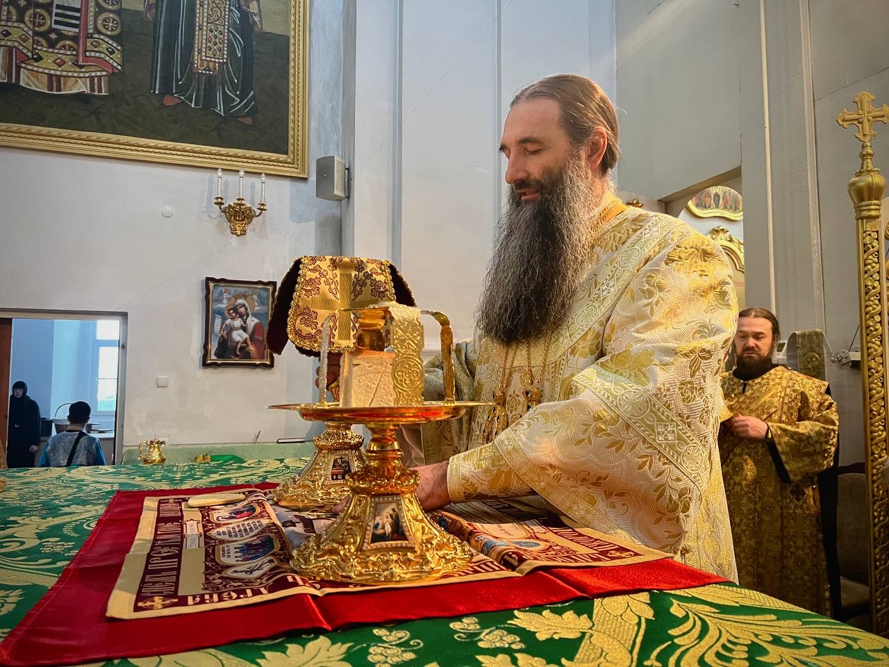 Його Високопреосвященству співслужили клірики обителі та гості у священному сані. Під час богослужіння молилася настоятелька монастиря ігуменя Антонія (Стеценко) з сестрами.