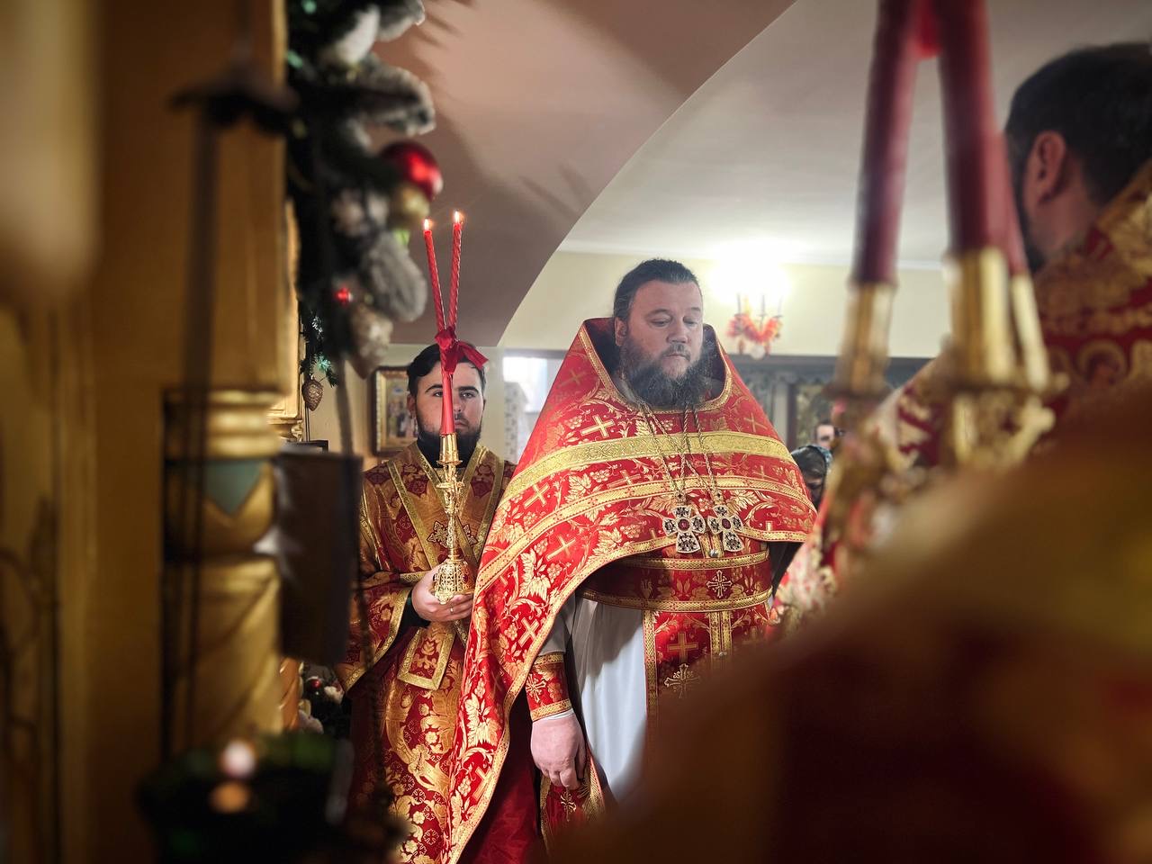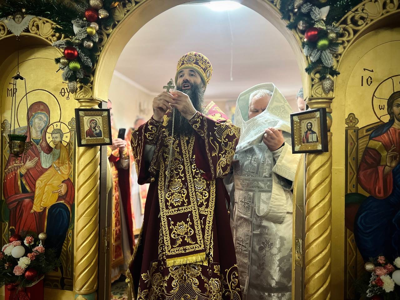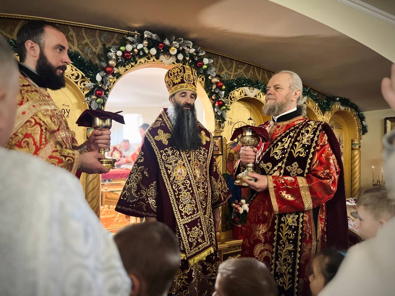 Його Високопреосвященству співслужили: секретар єпархії архімандрит Єнох (Торак), благочинний другого міського округу протоієрей Віталій Білявський, настоятель храму протоієрей Ігор Лампицький та духовенство міста.
