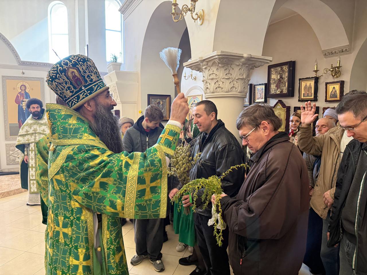 Після богослужіння, за благочестивою традицією свята, архіпастир звершив освячення гілок верби.